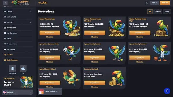 Flappy-erbjudanden förklarade: Bonusar, Free Spins och veckodeals