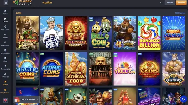 VÄr casinolobby innehÄller över 7 500 titlar inom spelautomater, live casino, bordsspel, jackpottspel, bonusköpstitlar och crash-spel. Om du vill hitta Flappy spelautomater kan du filtrera efter funktioner som Megaways och Bonus Buy och sedan sortera efter leverantör eller popularitet. PopulÀra RTP-exempel inkluderar Gates of Olympus 1000 (96.50%) och Zombie Road (96.56%).